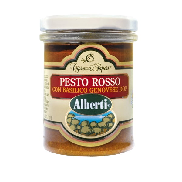I Det Italienske Køkken går vi ikke på kompromis med kvaliteten, og vi har længe ledt efter en rigtig god kvalitetspesto. På vores rejser rundt i Italien har vi mødt mange pesto-producenter, og vi har smagt rigtig mange forskellige pestoer - også en del af god kvalitet. Men det var svært at finde den autentiske smag, som vi elsker, og som vi oplevede igen og igen, da vi i sin tid boede i Italien. Nu har vi så endelig fundet en pesto, der overgår de utallige pestoer, som vi efterhånden har smagt både i Italien og herhjemme. Det er en pesto, som vi selv er helt vilde med, og som er vores bud på Italiens bedste pesto. Faktisk er det vores bud på Italiens to bedste pestoer. For udover den klassiske grønne pesto – Pesto Ligure har vi også fundet en skøn rød pesto, Pesto Rosso, som er den bedste af de røde pestoer, som vi indtil videre har smagt både i Italien og i Danmark. Vi har nok alle smagt en pesto med for meget eller for lidt olie, for meget salt, eller en pesto, der er alt for bitter. Vores grønne pesto har en frisk smag af basilikum og en rigtig god eftersmag. Den røde pesto smager af lækre solmodne tomater. Begge vores kvalitetspestoer er fra den anerkendte italienske pesto-producent Alberti i Ligurien. Det er en familievirksomhed, der med gode råvarer, solidt håndværk, stolthed og stor passion fremstiller pesto.